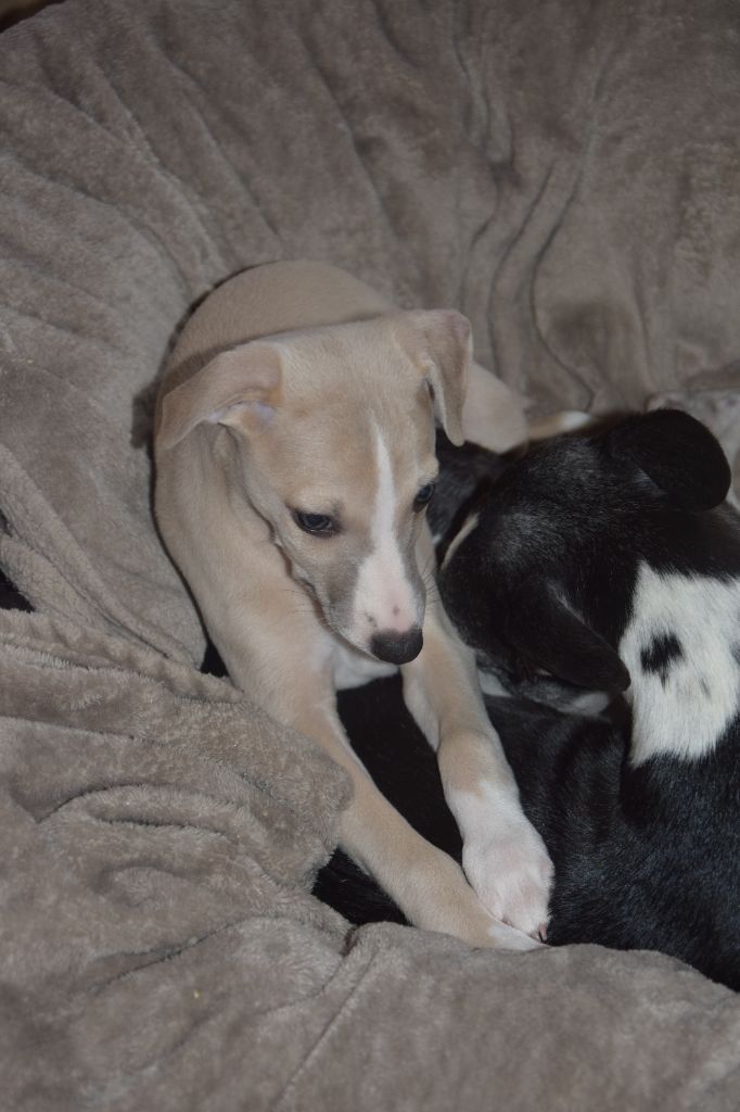 Les 3 mâles sont dans leur nouvelle famille, 1 femelle est dans sa nouvelle famille et 1 femelle reste avec nous.